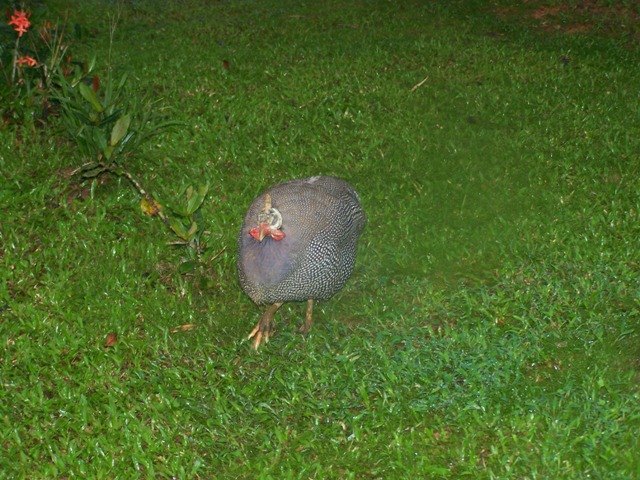 Pet guinea fowl at the jungle lodge